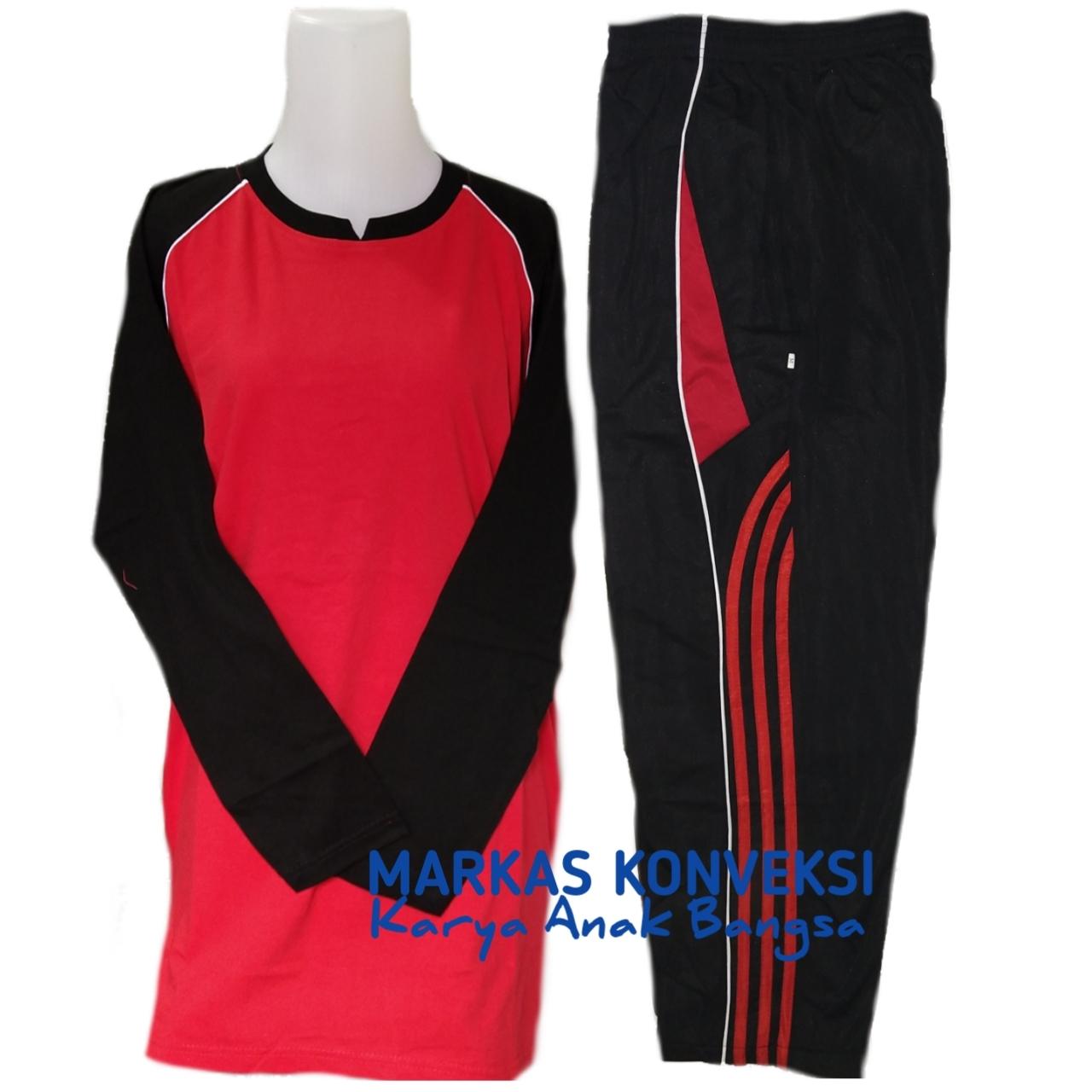 Seller Produk Setelan Baju Training Olahraga Wanita Merah Hitam